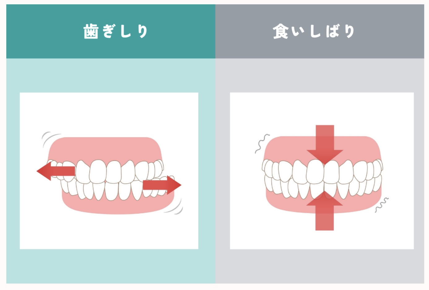 くいしばりとは、無意識に歯に力が入り続けている状態です。歯ぎしりは、主に就寝中に上下の歯を強くこすったり噛みしめたりしている状態を指します。